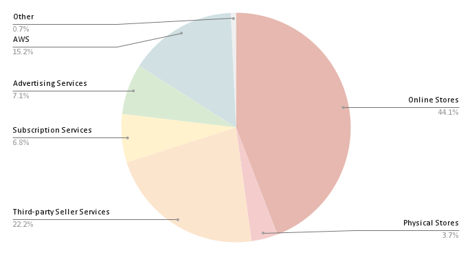 以上の6つの部門の他,売上高が189億ドルのフィジカルストアがあり,AIアシスタント「Alexa」を搭載したスピーカー「Amazon Echo」,テレビ向け映像出力デバイス「Fire TV Stick」などのハードウェアもある.